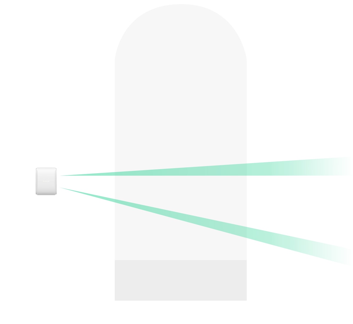 DualCurtain Outdoor features a technology to expand the protected area, which is unique among outdoor curtain motion detectors. When Near Area Detection is enabled, the detector’s upper PIR sensor receives an additional narrow viewing sector directed at the angle of 40 degrees down against the main sector. The feature allows both sensors to detect movement when a human crosses the protected perimeter closely to the detector’s body, addressing the problem of the blind spot, which is a typical problem of such detectors.